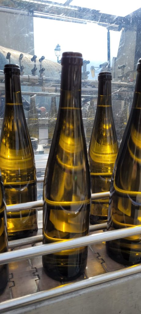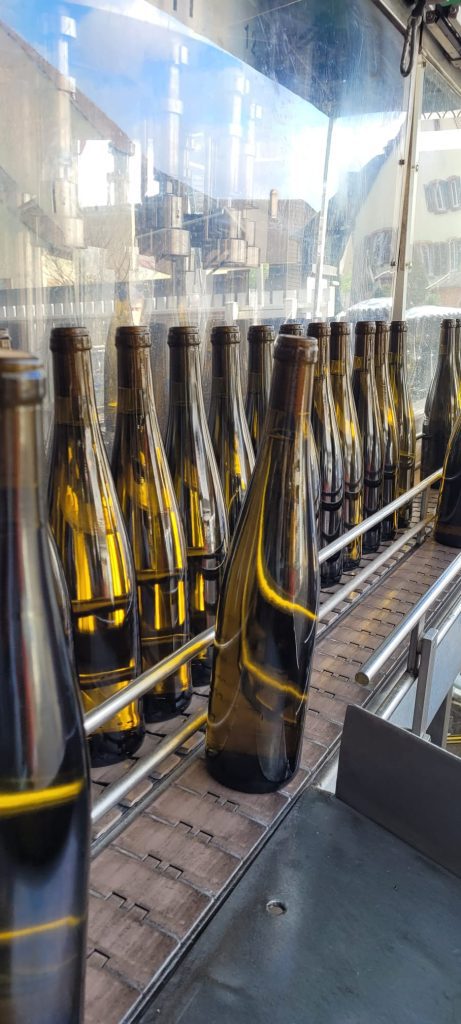 Notre partenaire Prestamise 2000 vins a installé au domaine Vins d’Alsace Jérôme Tappe une machine de mise en bouteille. Nous avons réalisé la mise en bouteille de pinot noir dans des jolies bouteilles blanches.