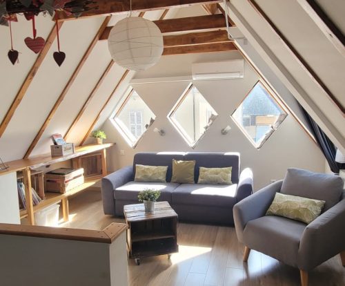 Tout confort, ce gîte en duplex, climatisé et doté de 55 m² peut accueillir de 2 à 4 personnes.